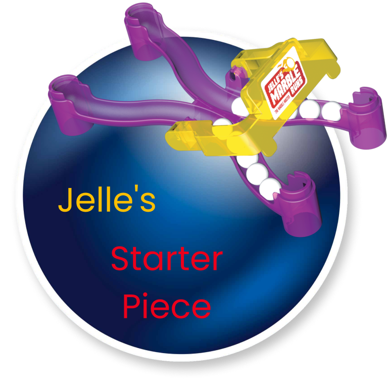 - Patent pending Jelle’s Starter Piece simultaneously releases 20+ marbles down 2 different tracks.