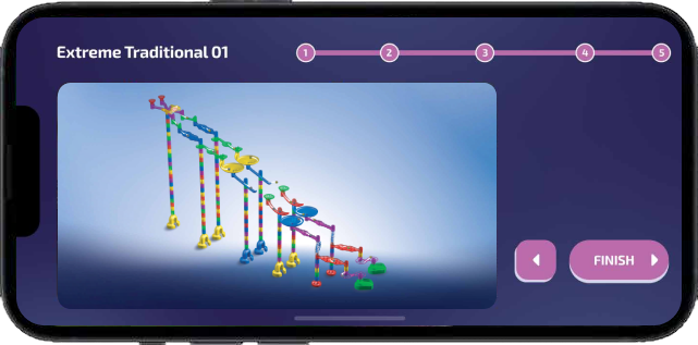 Our Free App is included with purchase and has step-by-step instructions. Once you build, select your race/marbles and experience a Jelle’s Race taking place in your living room with Music, Crowd Noise, and Play-by-Play announcing just like you hear on all of our videos!